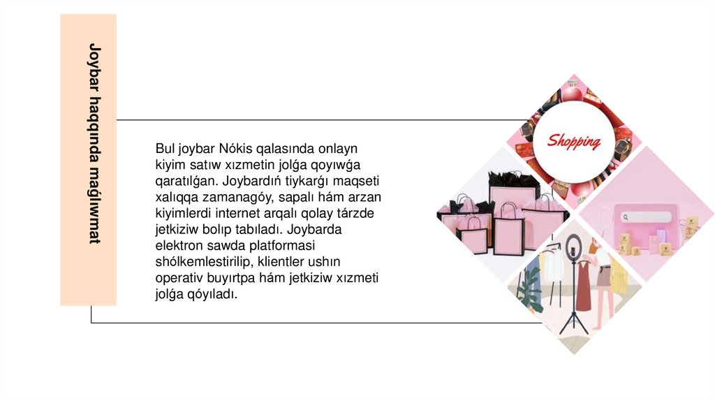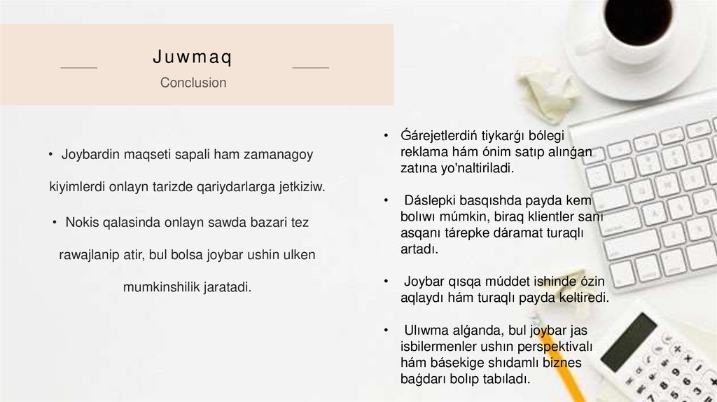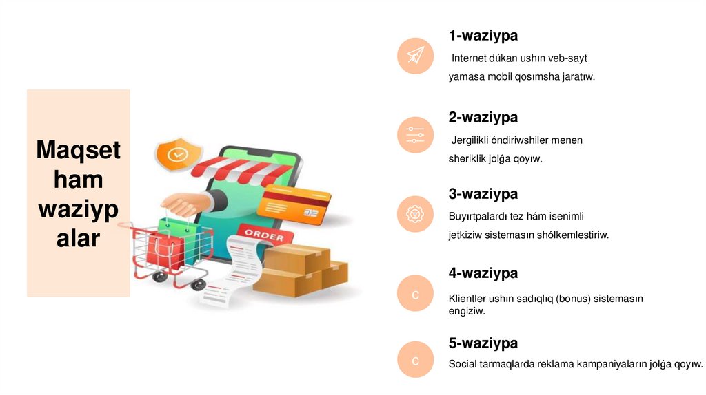 kiyimlerdi onlayn tarizde qariydarlarga jetkiziw.