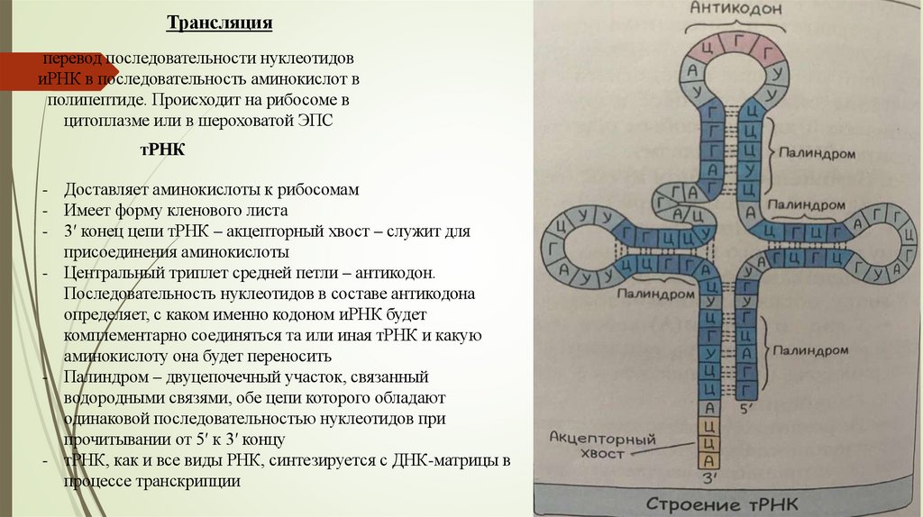 - 3′ конец цепи тРНК – акцепторный хвост – служит для