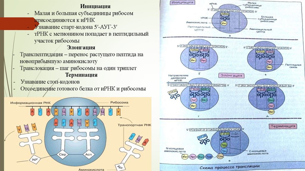 нуклеотидов — триплетом, или кодоном. Кодон метионина направлении — от 5′ к 3′ концу