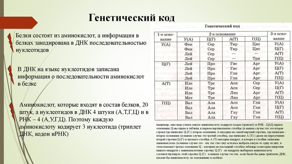строка где написано Ц (Г) ) второе основание А находим на самой верхней строчке, где написано второе основание (в нашем случае это третий столбец, где написано А (Т) ) далее на пересечении