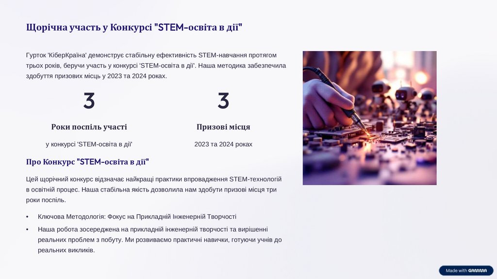 трьох років, беручи участь у конкурсі 'STEM-освіта в дії'. Наша методика забезпечила