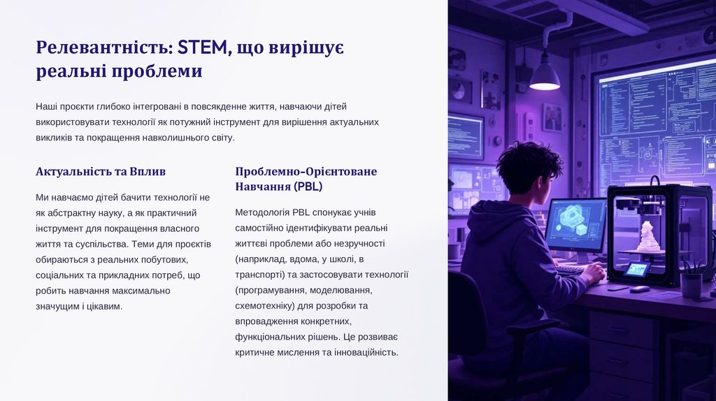 реальних проблем з побуту. Ми розвиваємо практичні навички, готуючи учнів до