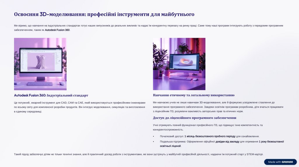 Такий підхід забезпечує дітям не тільки технічні знання, але й практичний досвід роботи з інструментами, які вони зустрінуть у майбутній професійній діяльності, надаючи їм потужний старт у STEM-кар'єрі.
