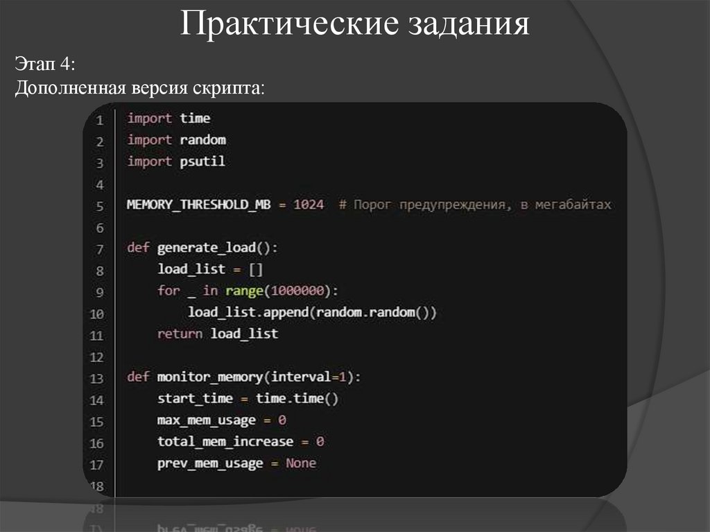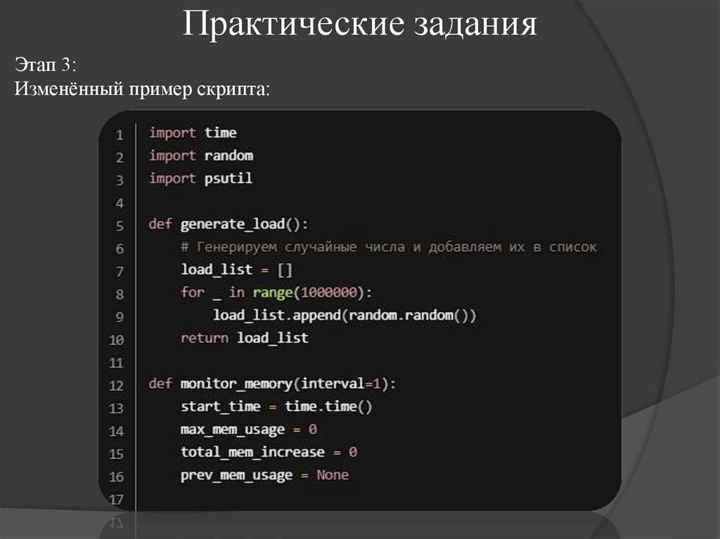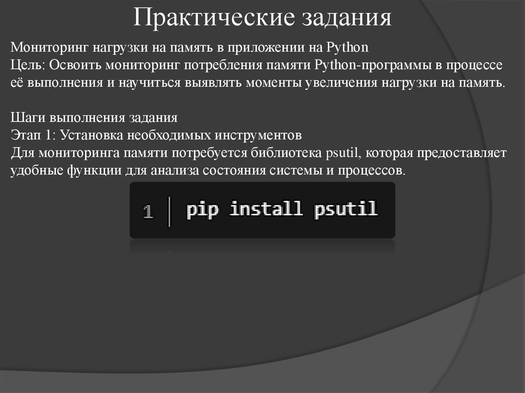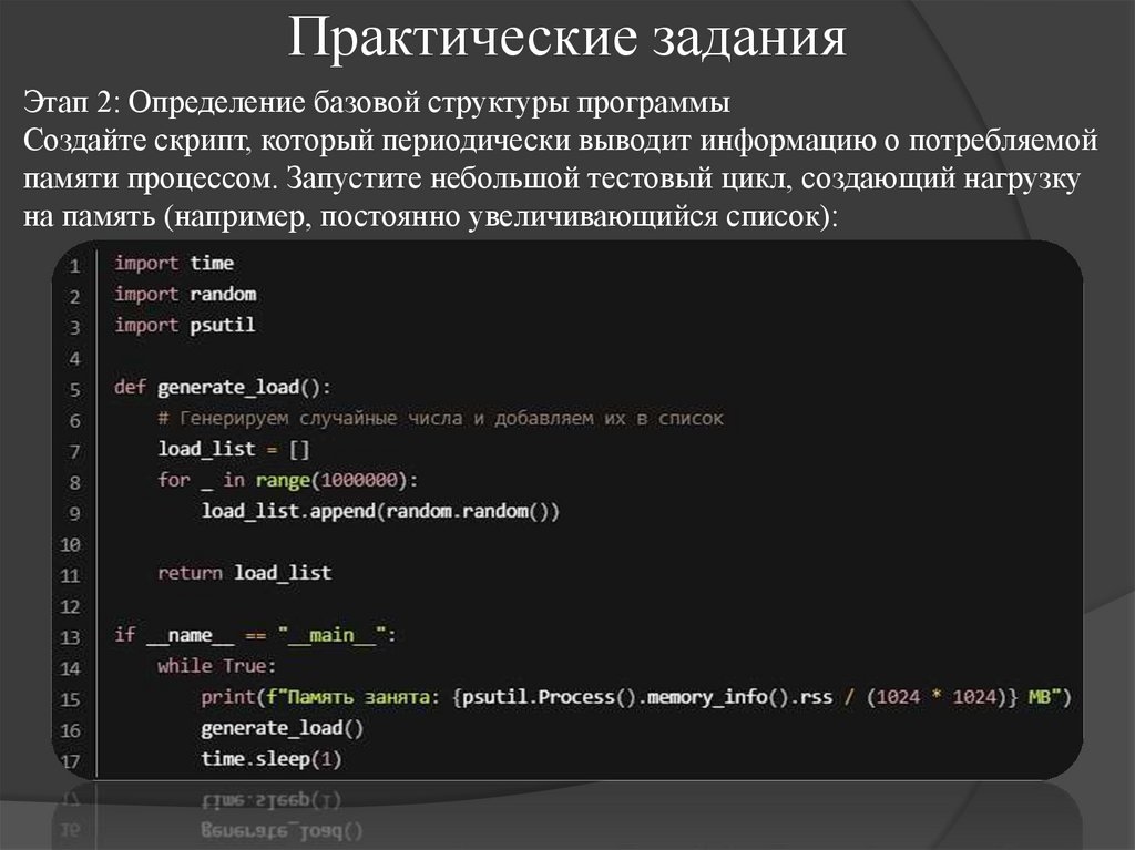 Практические заданияМониторинг нагрузки на память в приложении на Python