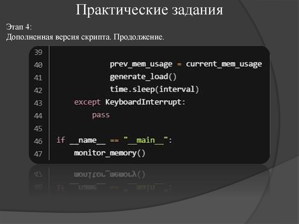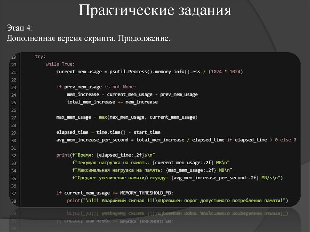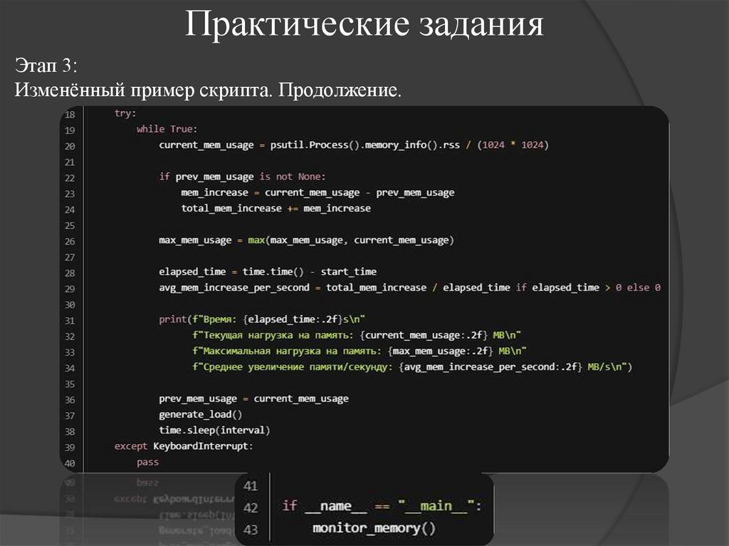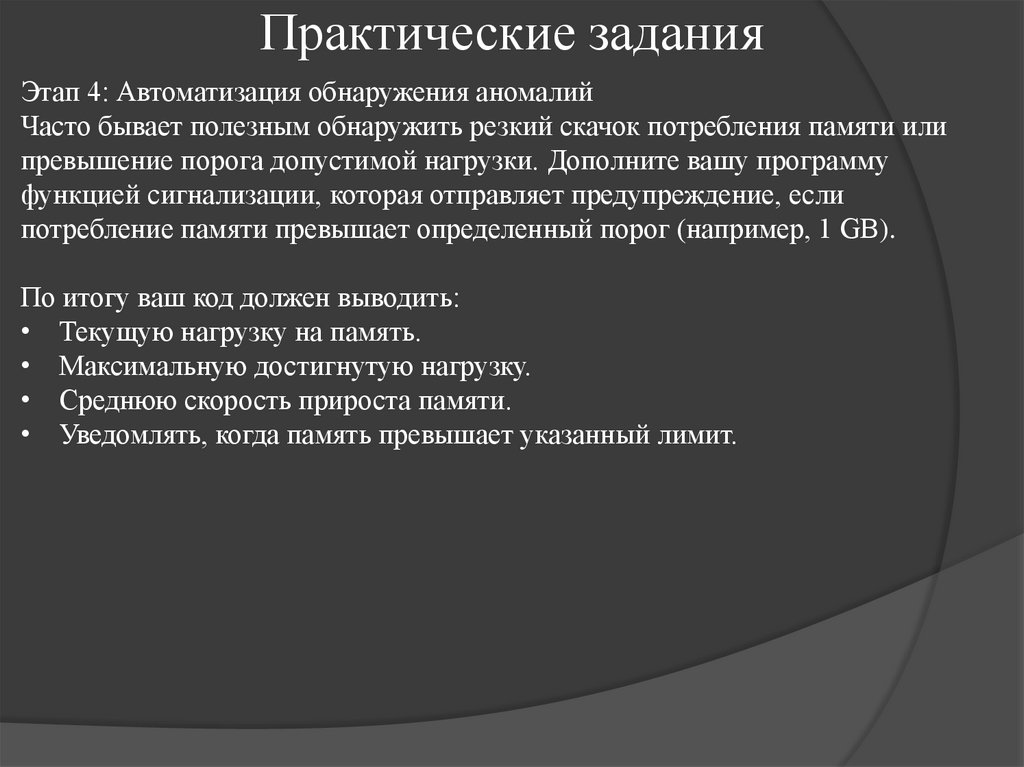Практические заданияМониторинг нагрузки на память в приложении на Python