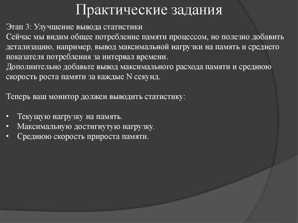 Практические заданияЭтап 3: Улучшение вывода статистики