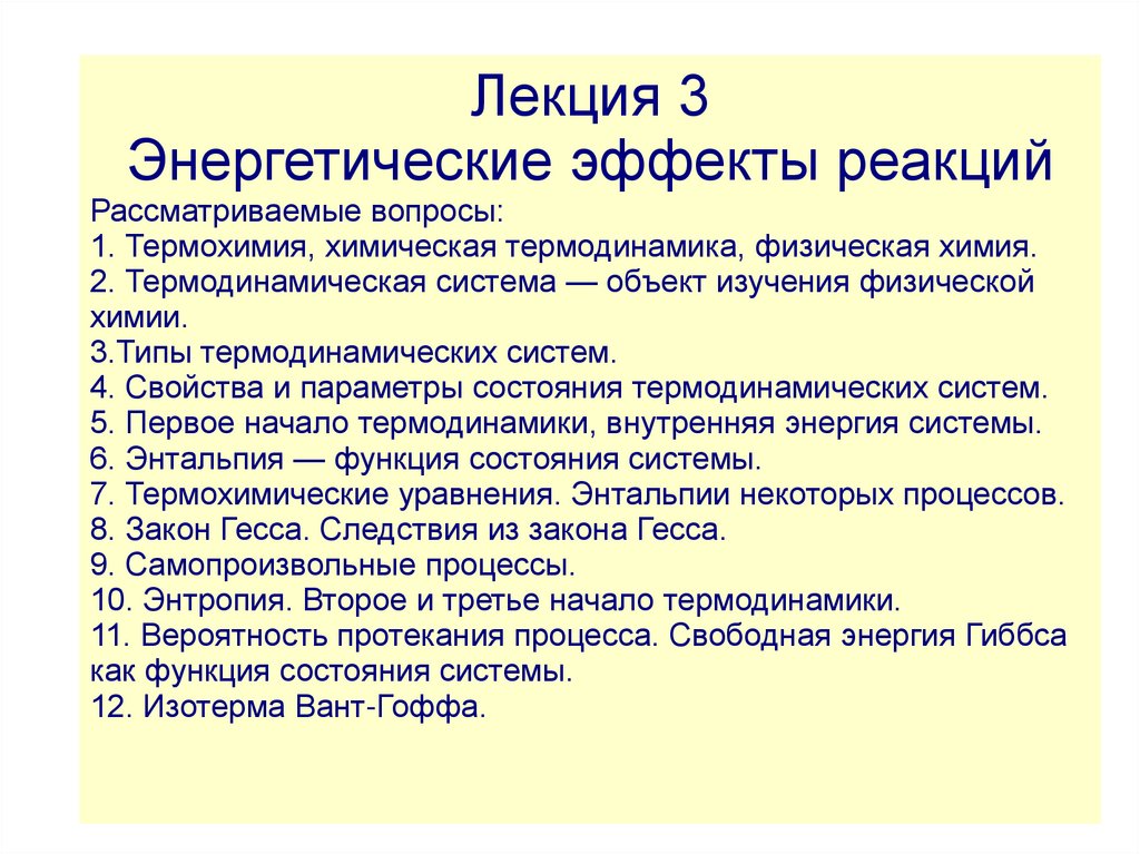 Лекция 3Энергетические эффекты реакций