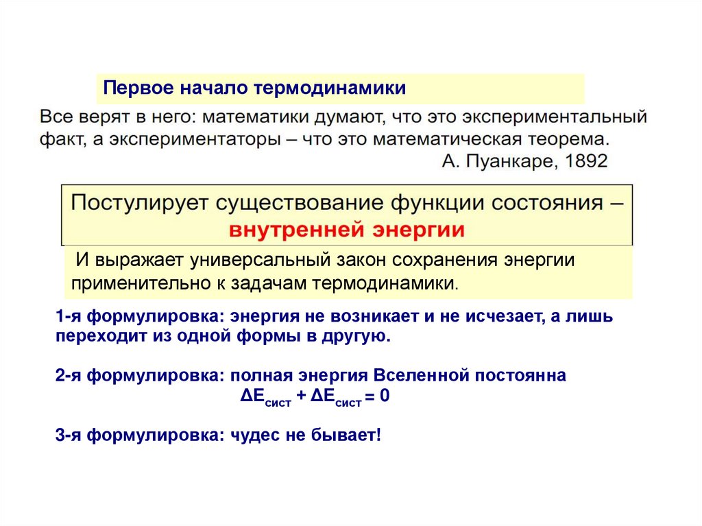Первое начало термодинамикиИ выражает универсальный закон сохранения энергии