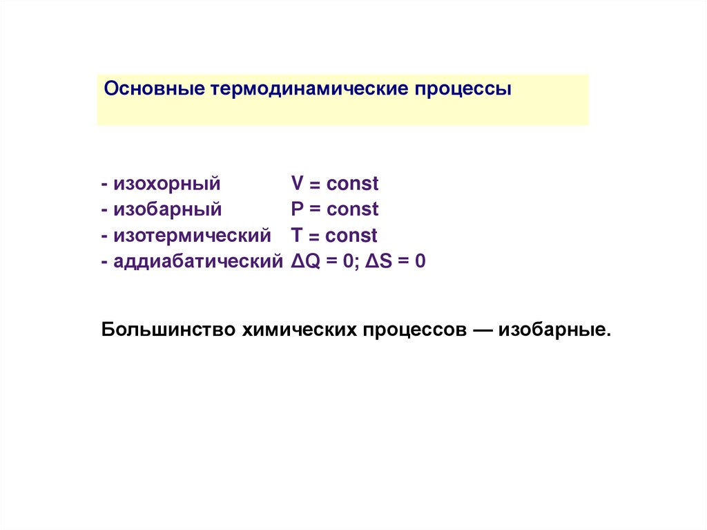 Большинство химических процессов — изобарные.