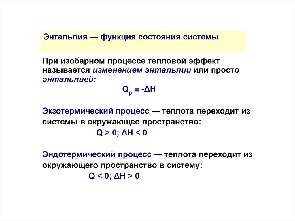 Энтальпия — функция состояния системыПри изобарном процессе тепловой эффект