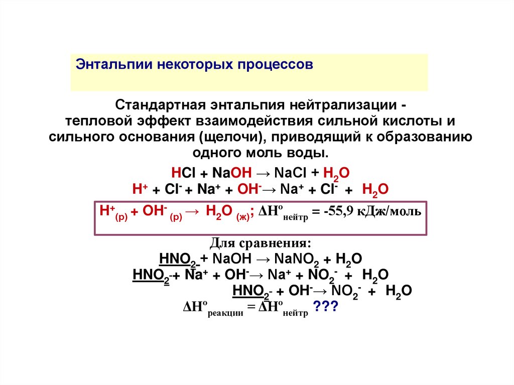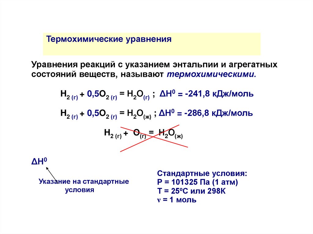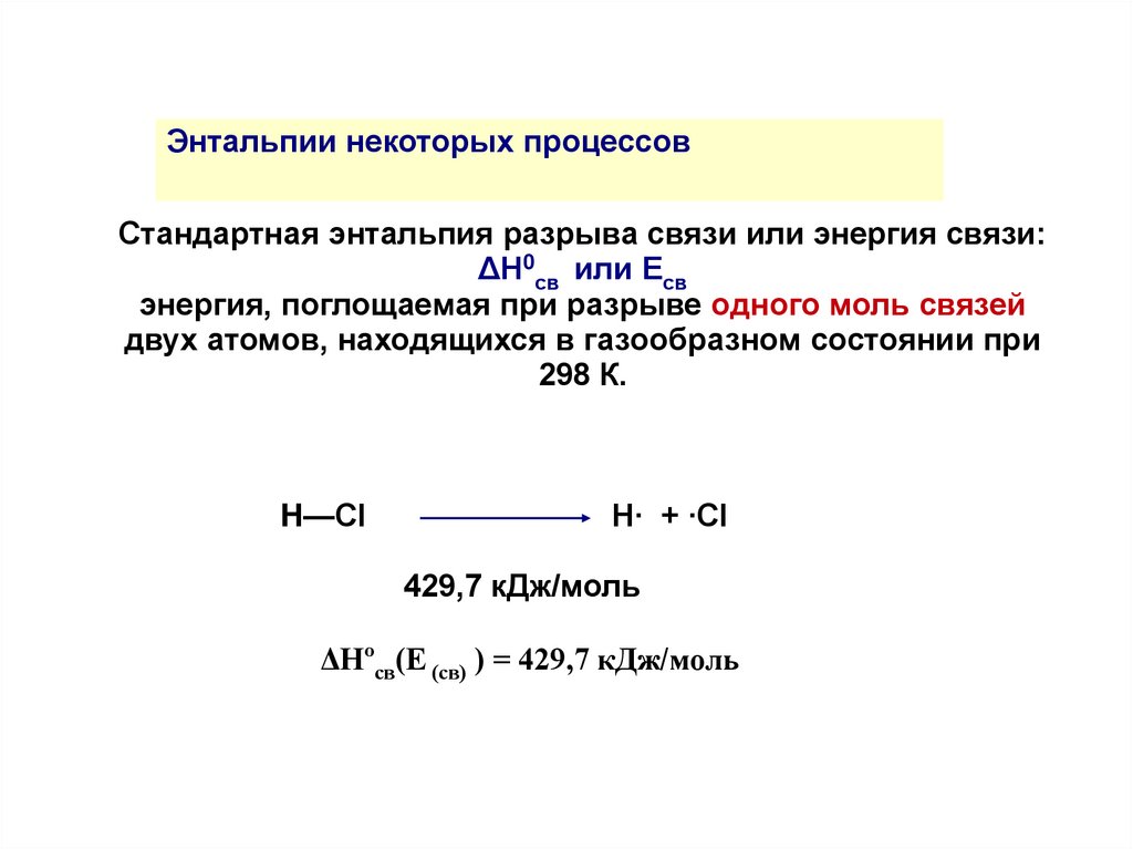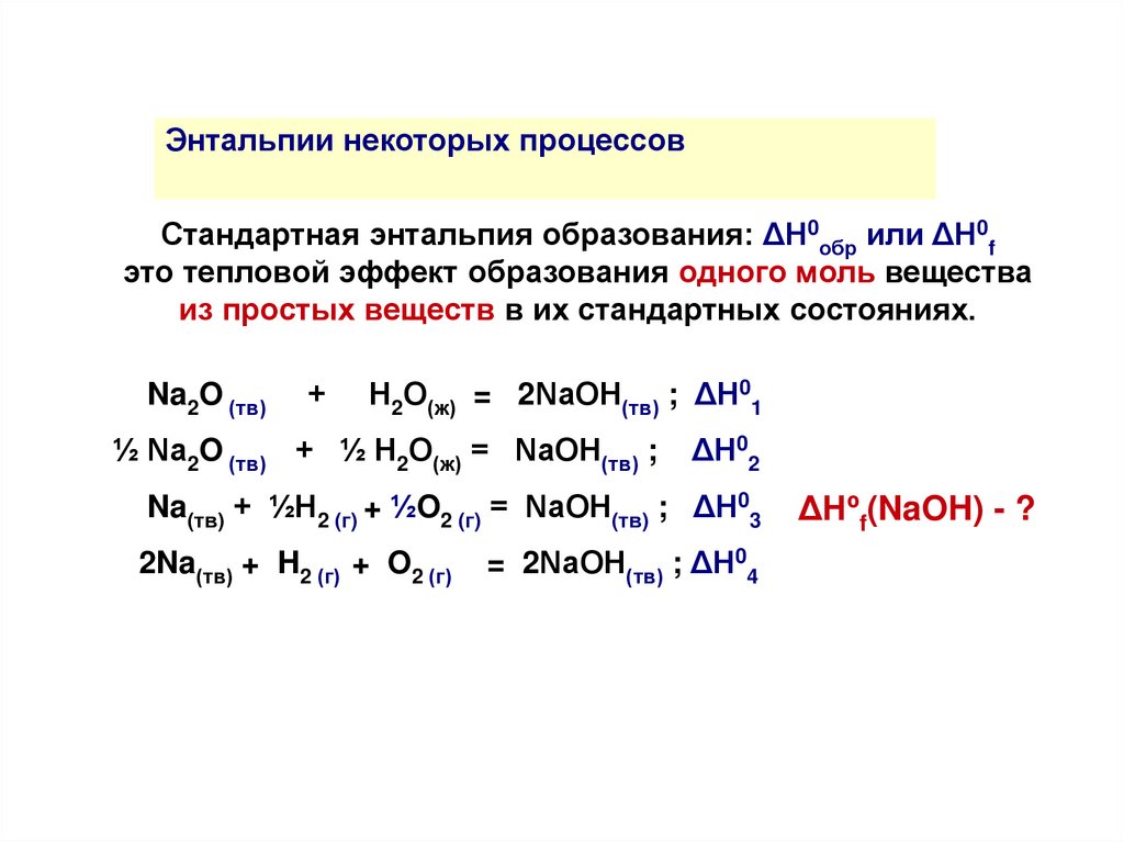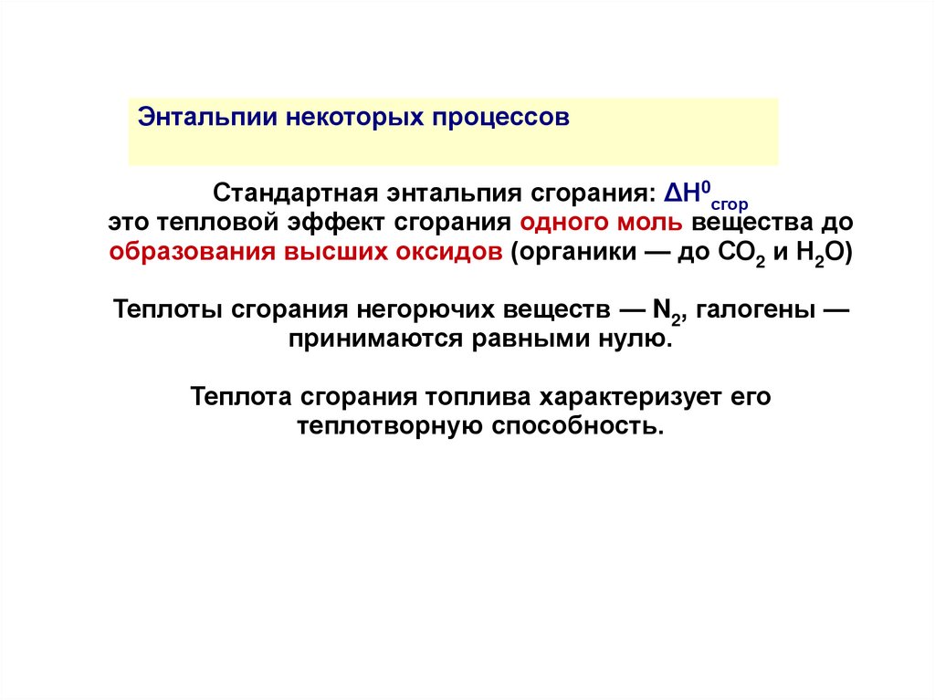 7. Термохимические уравнения. Энтальпии некоторых процессов.