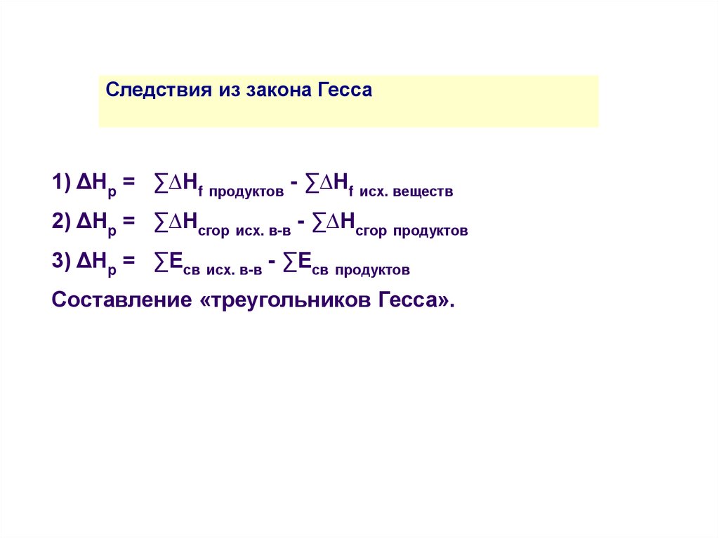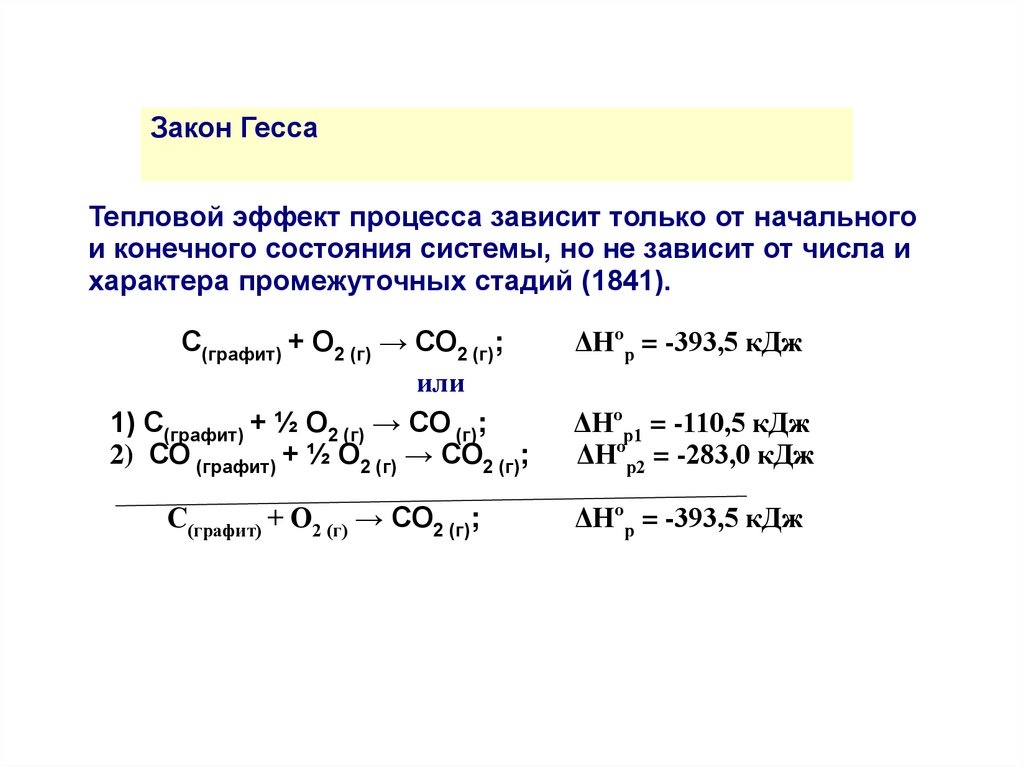 но и в соответствии с законом Гесса, используя