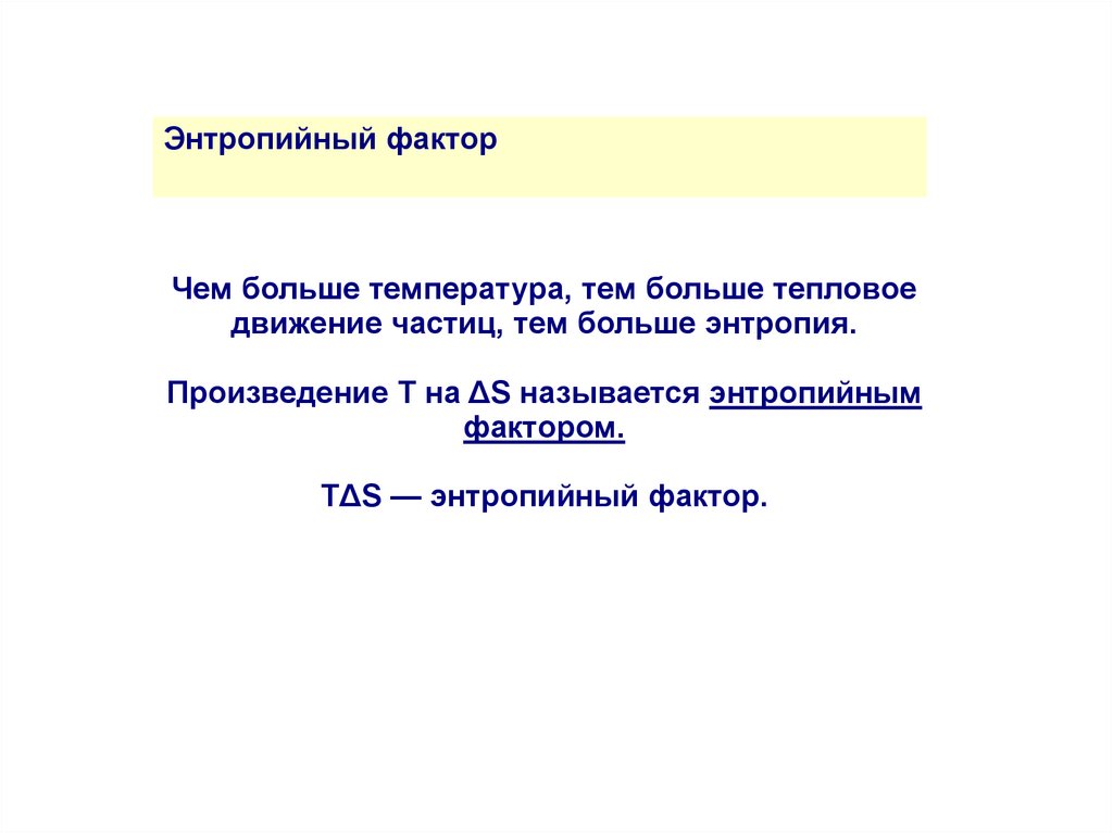 Энтропийный факторЧем больше температура, тем больше тепловое