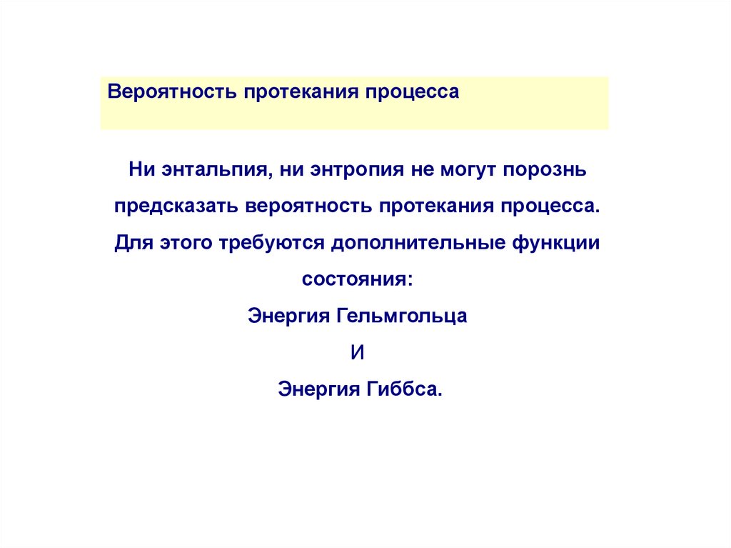 Вероятность протекания процессаНи энтальпия, ни энтропия не могут порознь