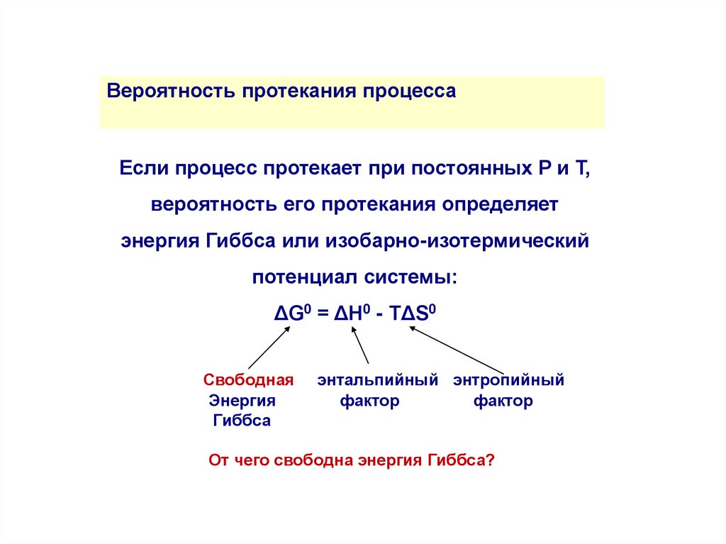 Вероятность протекания процессаЕсли процесс протекает при постоянных P и T,