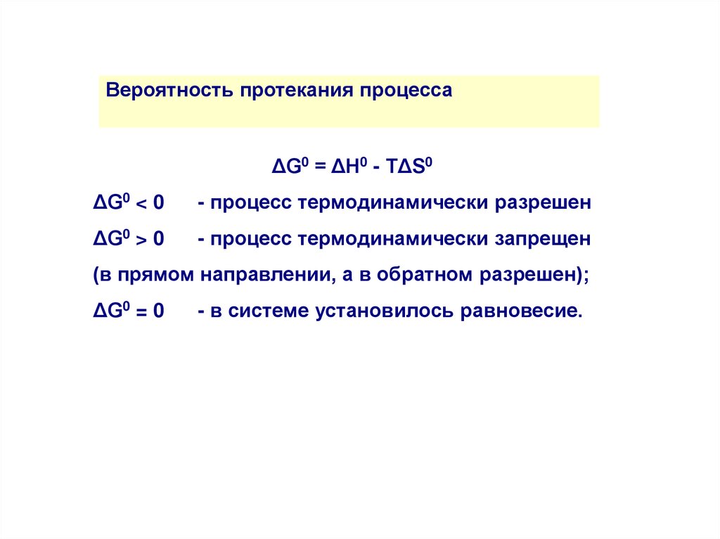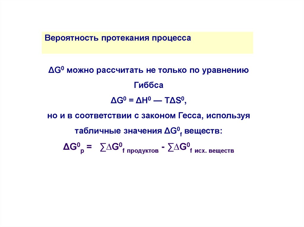 Вероятность протекания процессаΔG0 можно рассчитать не только по уравнению