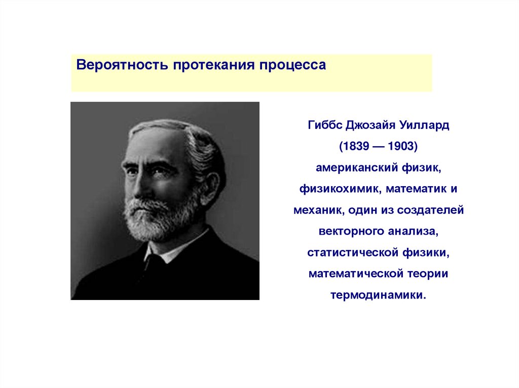 Вероятность протекания процессаГиббс Джозайя Уиллард