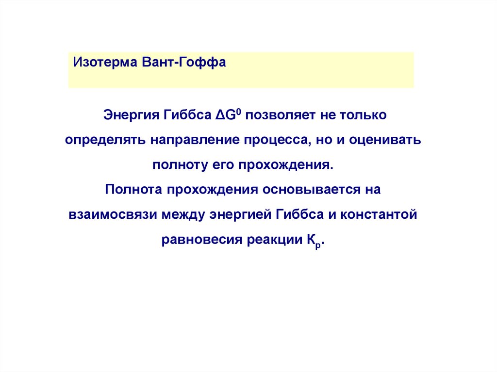 Изотерма Вант-ГоффаЭнергия Гиббса ΔG0 позволяет не только