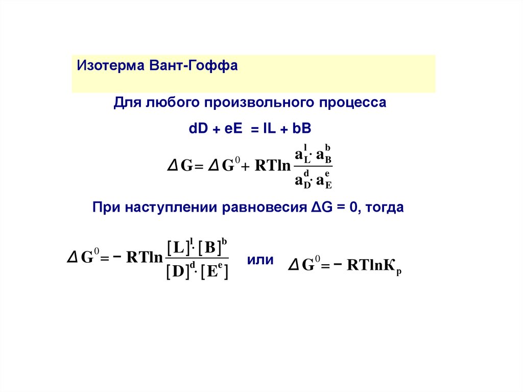 Изотерма Вант-ГоффаДля любого произвольного процесса