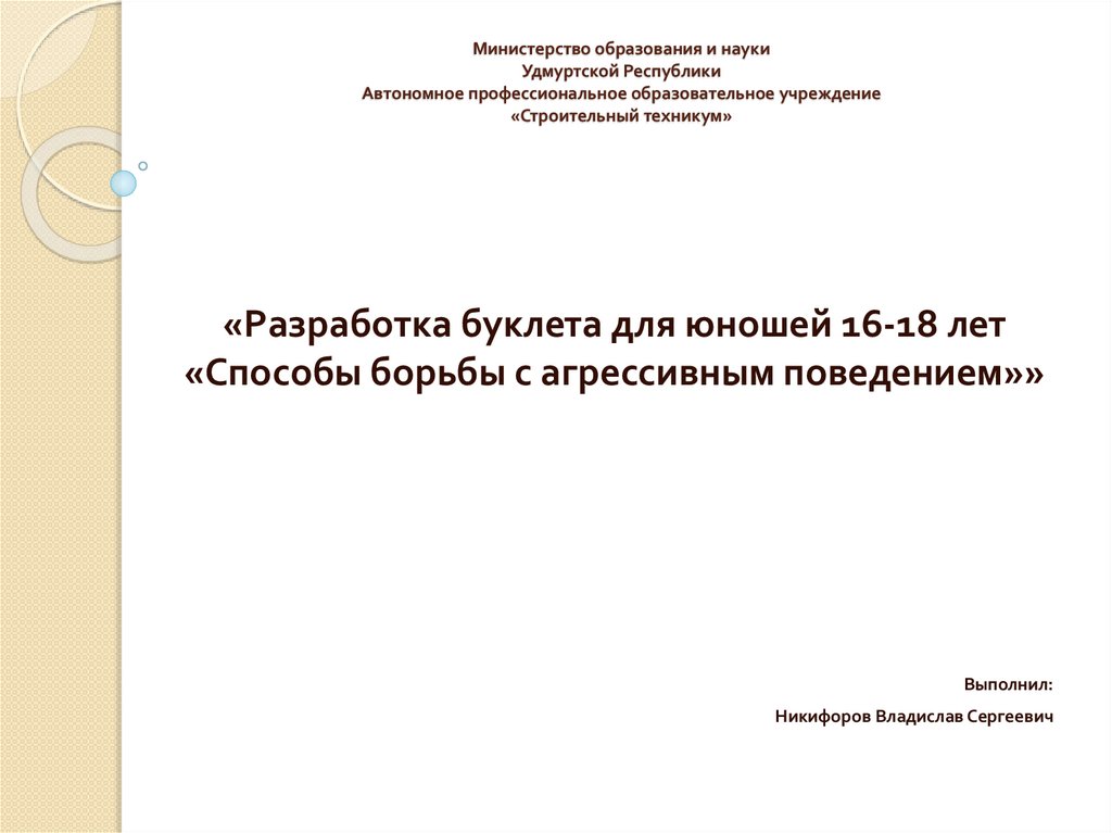 1. Министерство образования и науки Удмуртской Республики Автономное профессиональное образовательное учреждение «Строительный