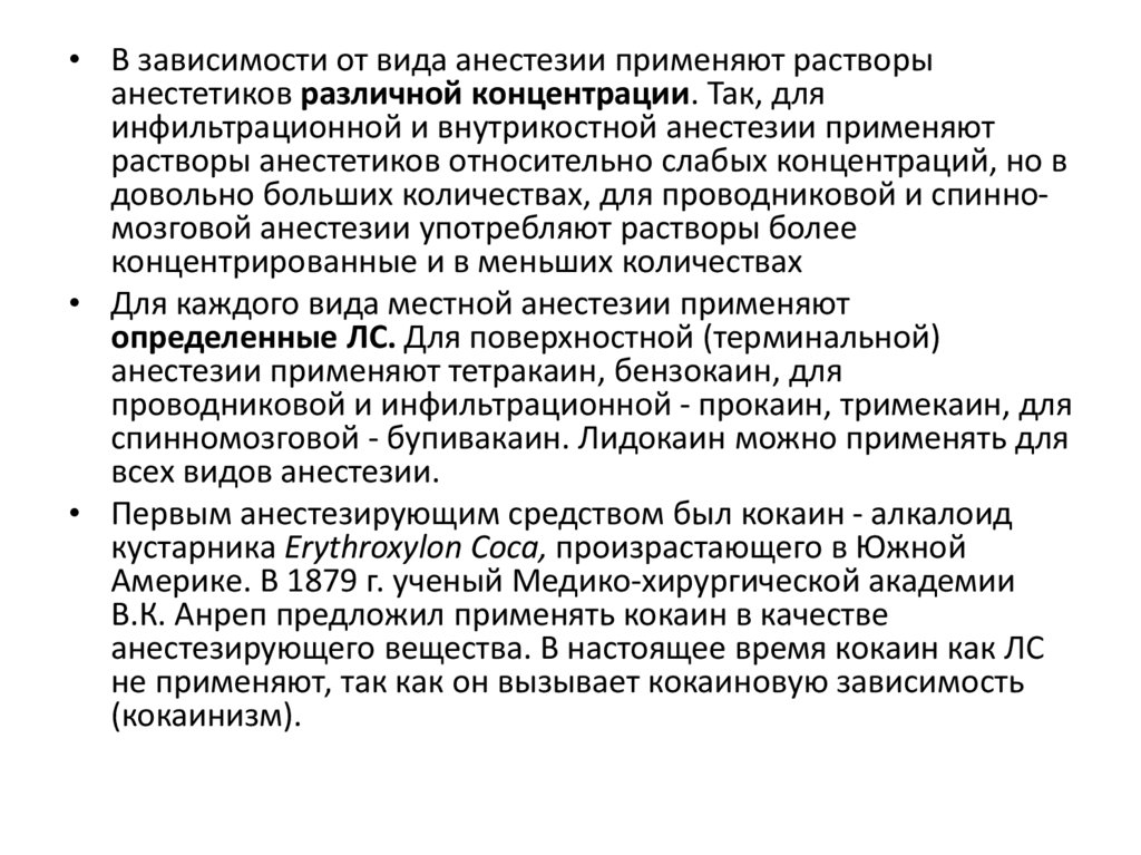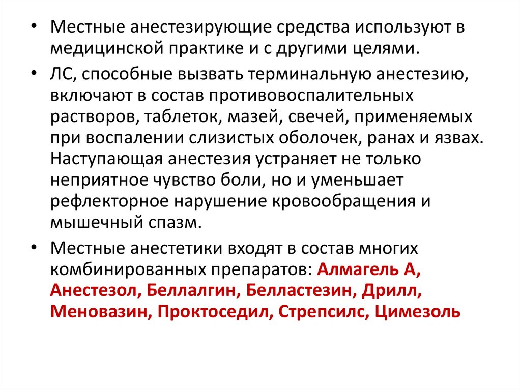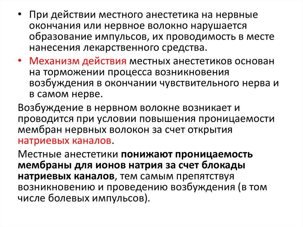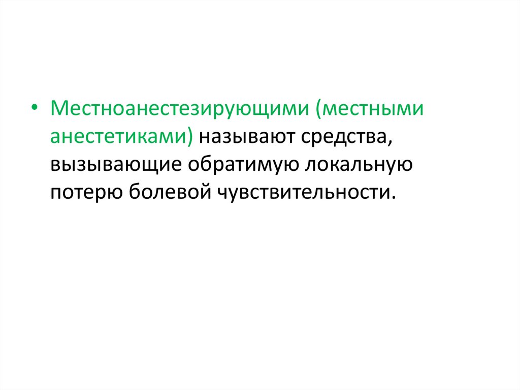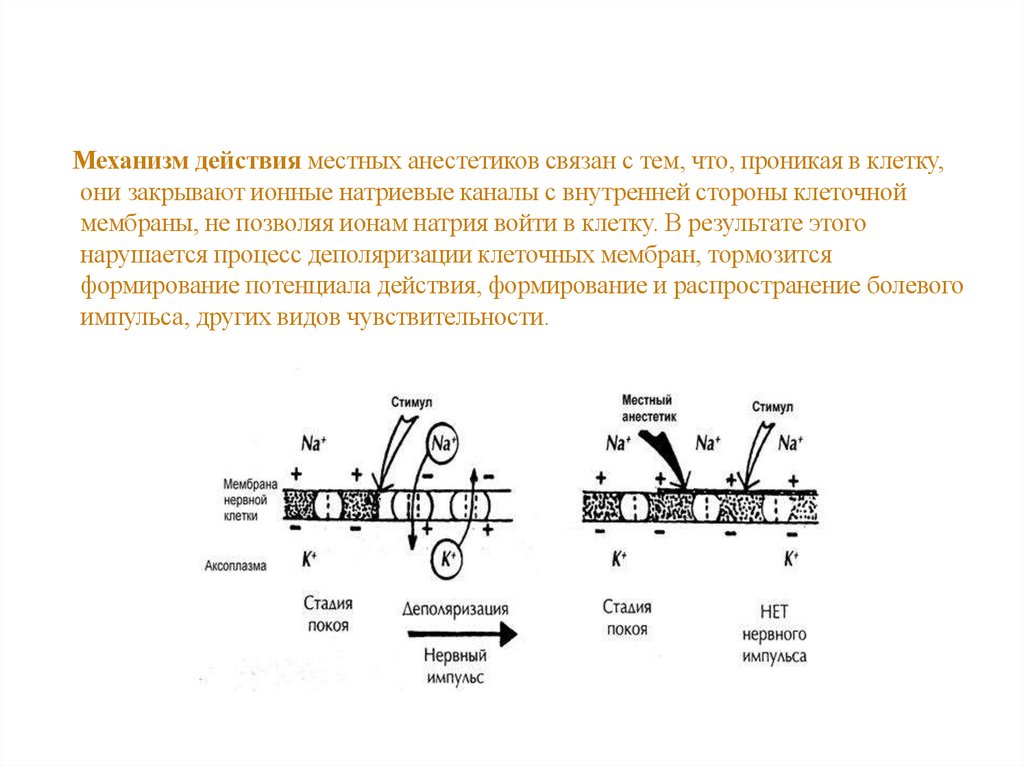 • Местноанестезирующие средствапрепятствуют возникновению или