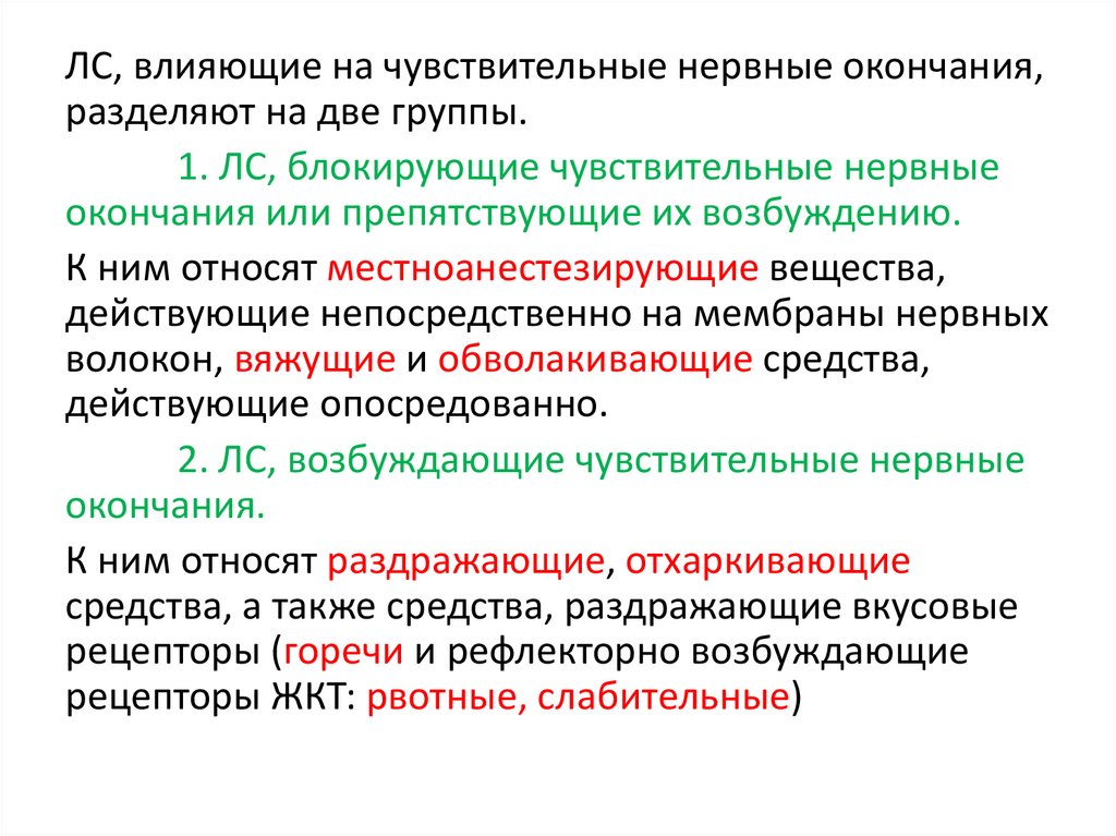 ЛС, влияющие на чувствительные нервные окончания,разделяют на две группы.