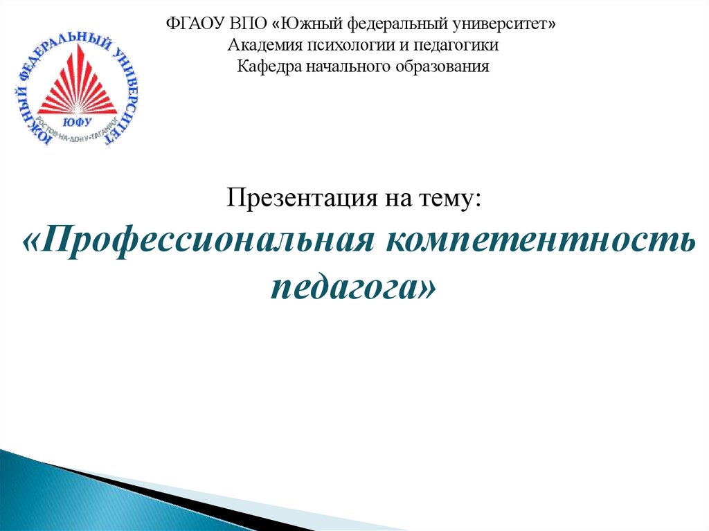 ФГАОУ ВПО «Южный федеральный университет»Академия психологии и педагогики