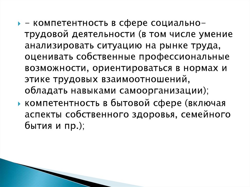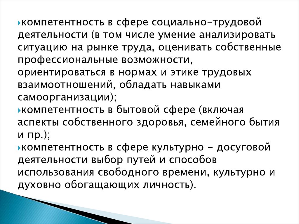 - компетентность в сфере социально-трудовой деятельности (в том числе умение