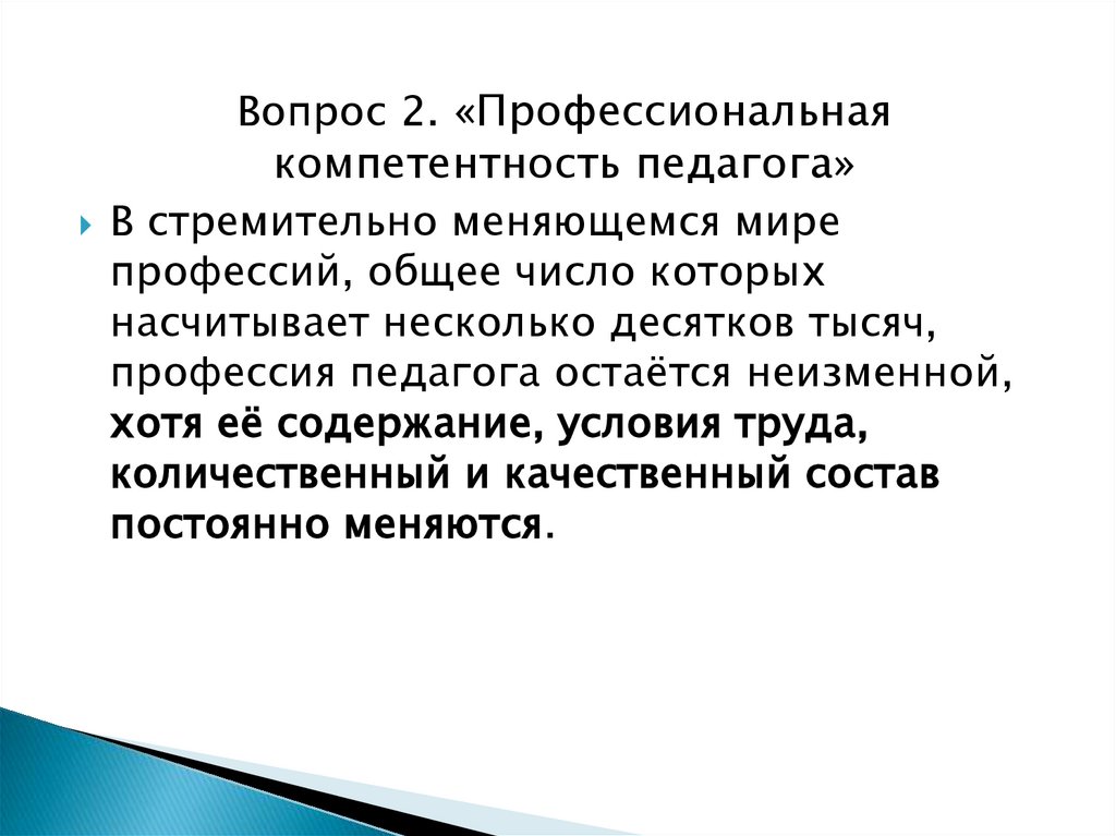 Профессиональная компетентность педагогаохватывает широкий круг вопросов решения
