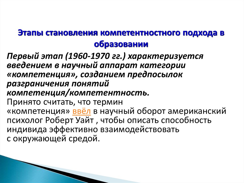 В последующие десятилетия понятие компетенция сталошироко использоваться в сфере управления персоналом