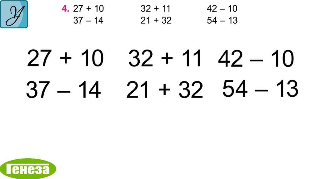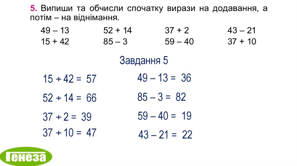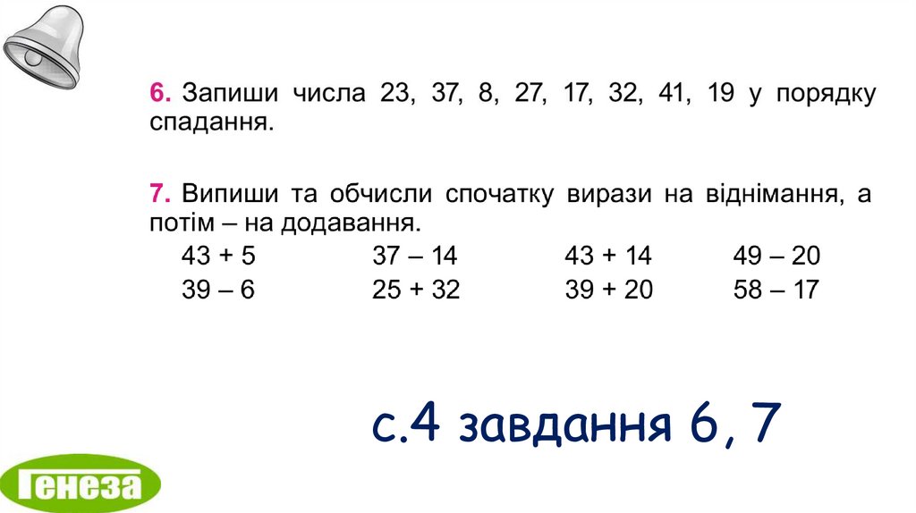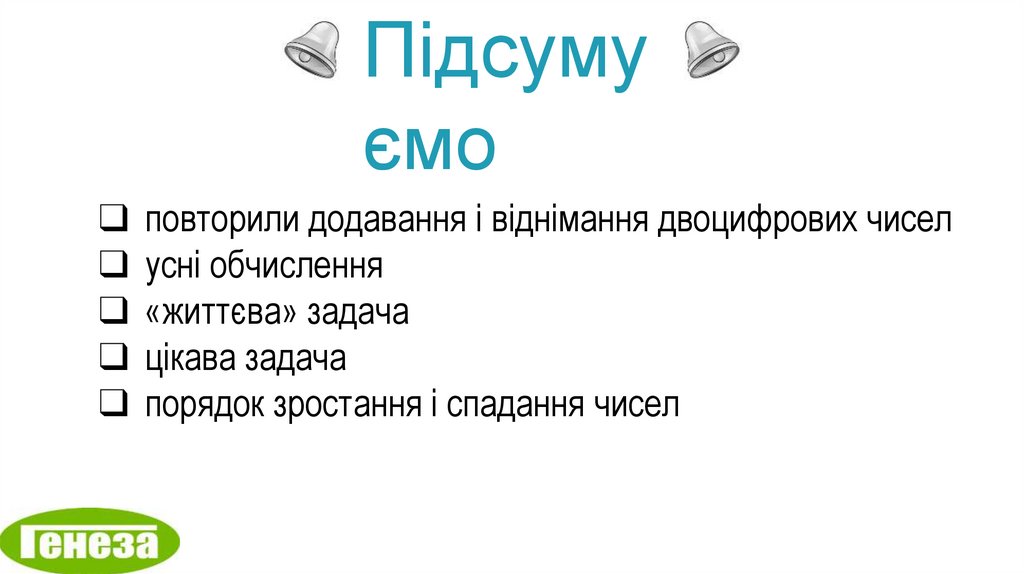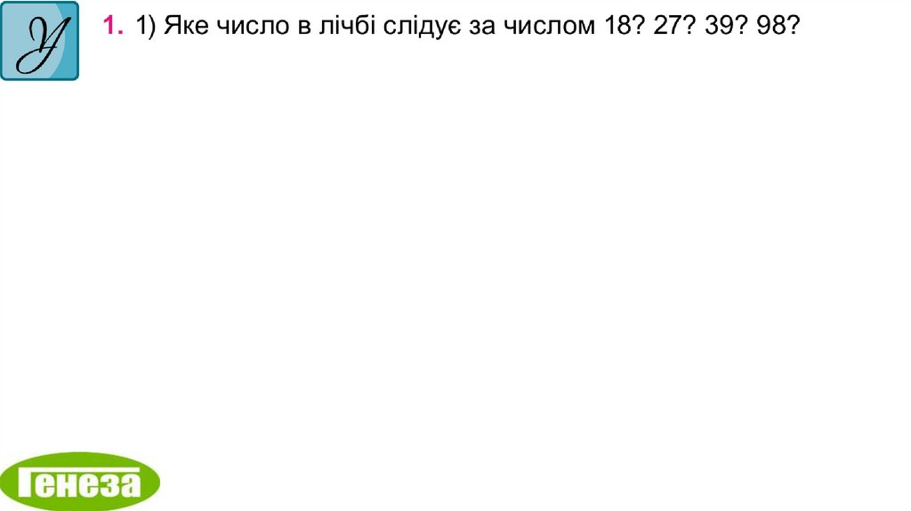 1. Нумерація чисел першої сотні. Додавання і віднімання двоцифрових чисел без перезоду через десяток