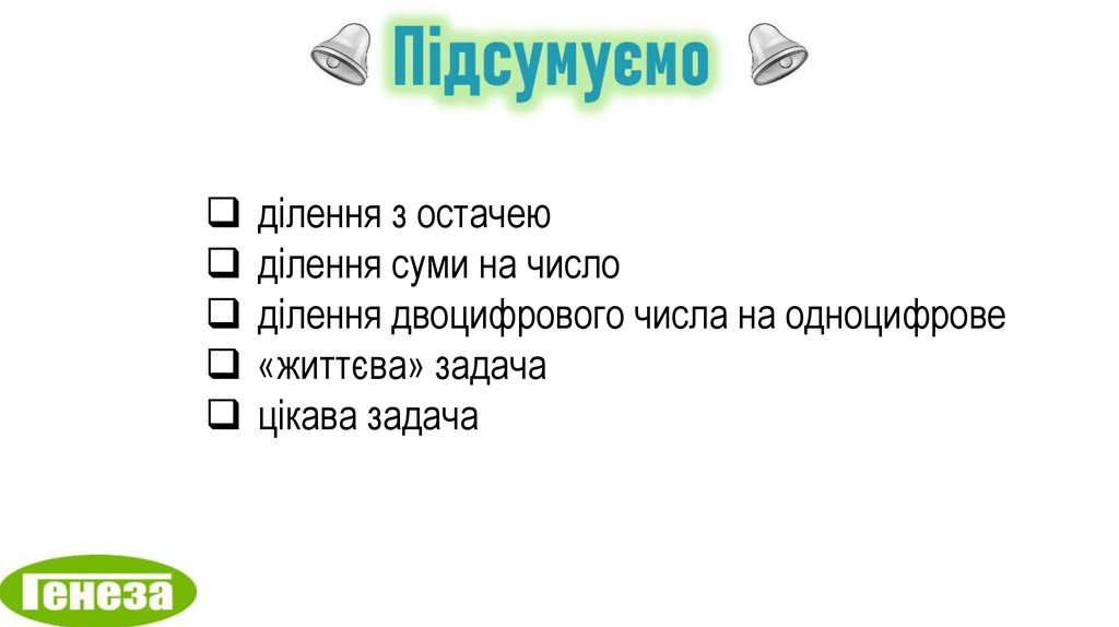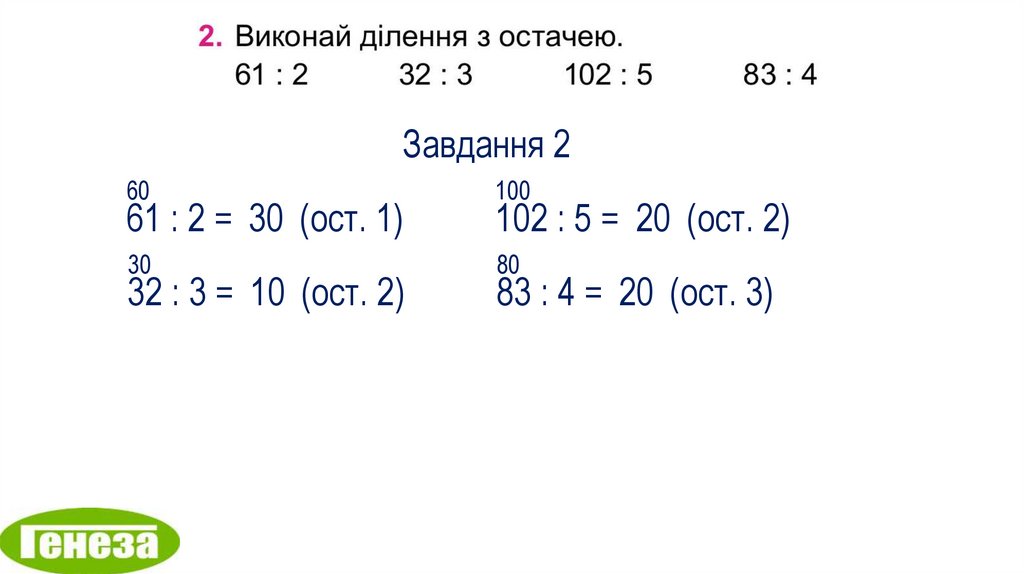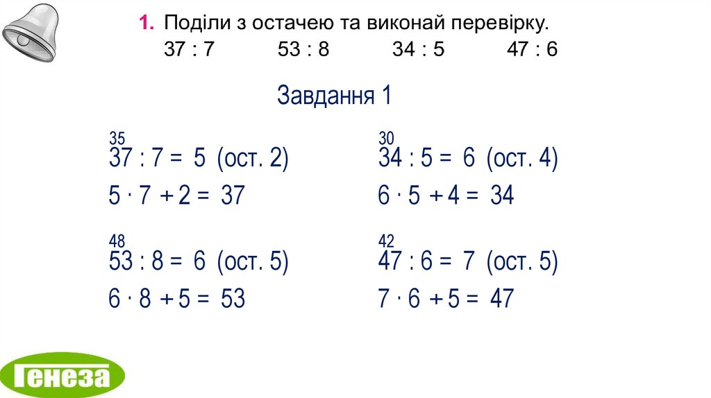 10. Ділення з остачею. Ділення суми на число. Ділення двоцифрового числа на одноцифрове