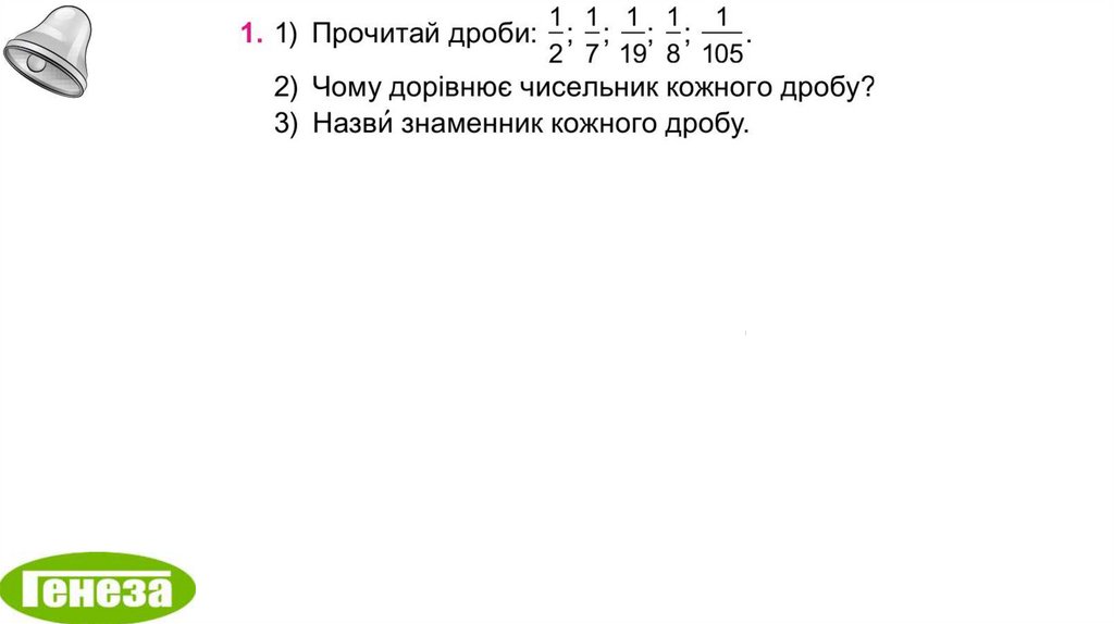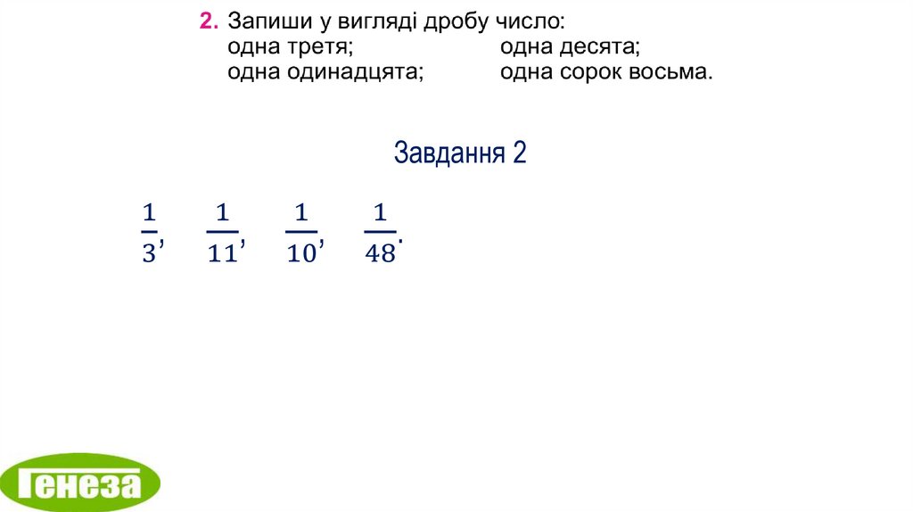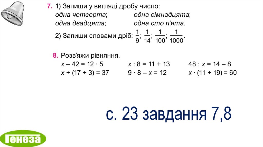 13. Частини. Дроби. розв'язування рівнянь, у яких праву частину або один із компонентів подано числовим виразом