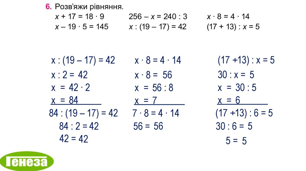 х : (19 – 17) = 42х : 2 = 42