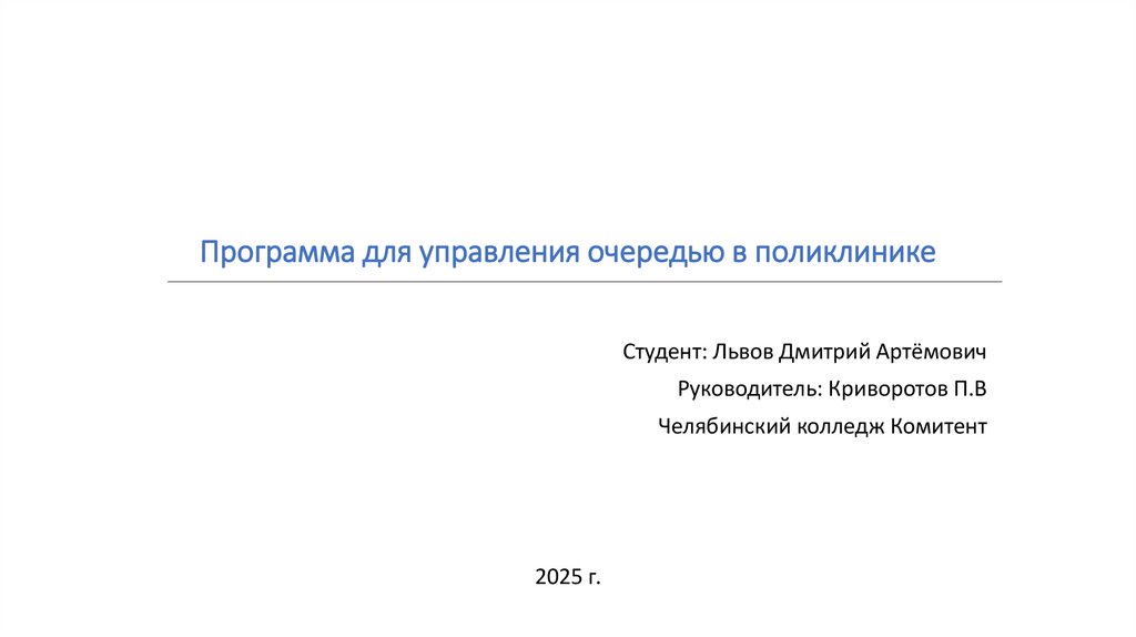 Разработана автоматизированная система QueueManager для управления очередью в поликлинике.