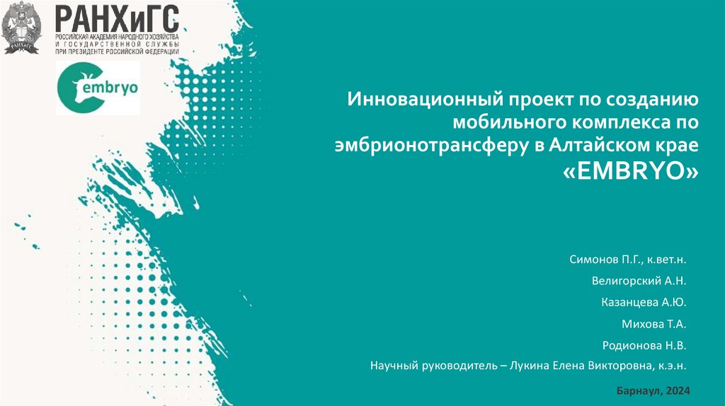 1. Инновационный проект по созданию мобильного комплекса по эмбрионотрансферу в Алтайском крае «EMBRYO»