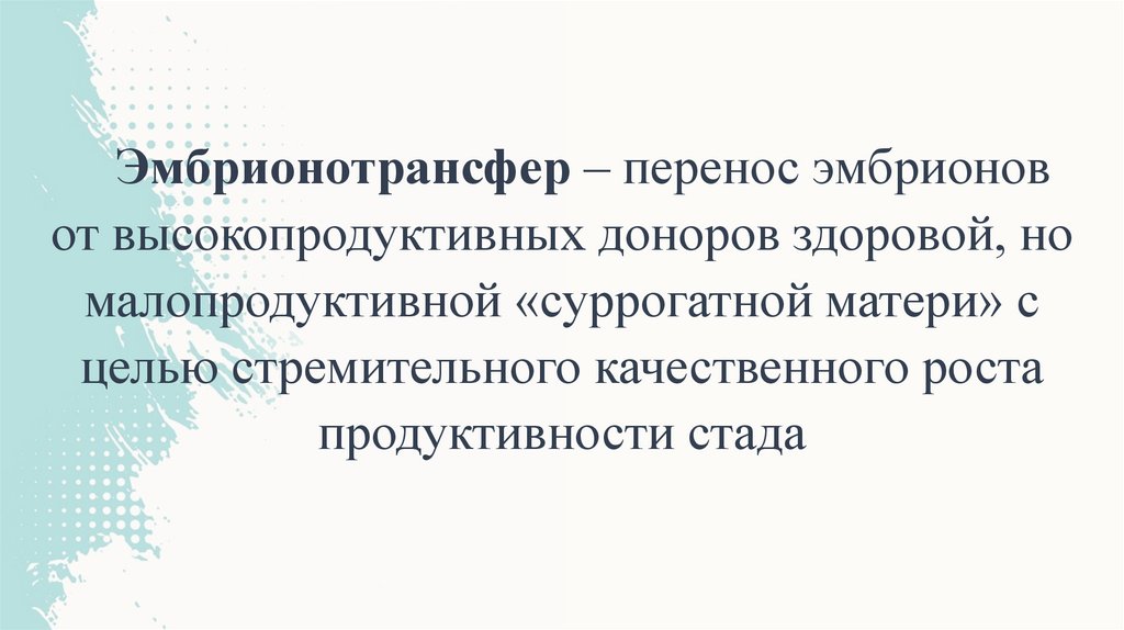 Эмбрионотрансфер – перенос эмбрионовот высокопродуктивных доноров здоровой, но