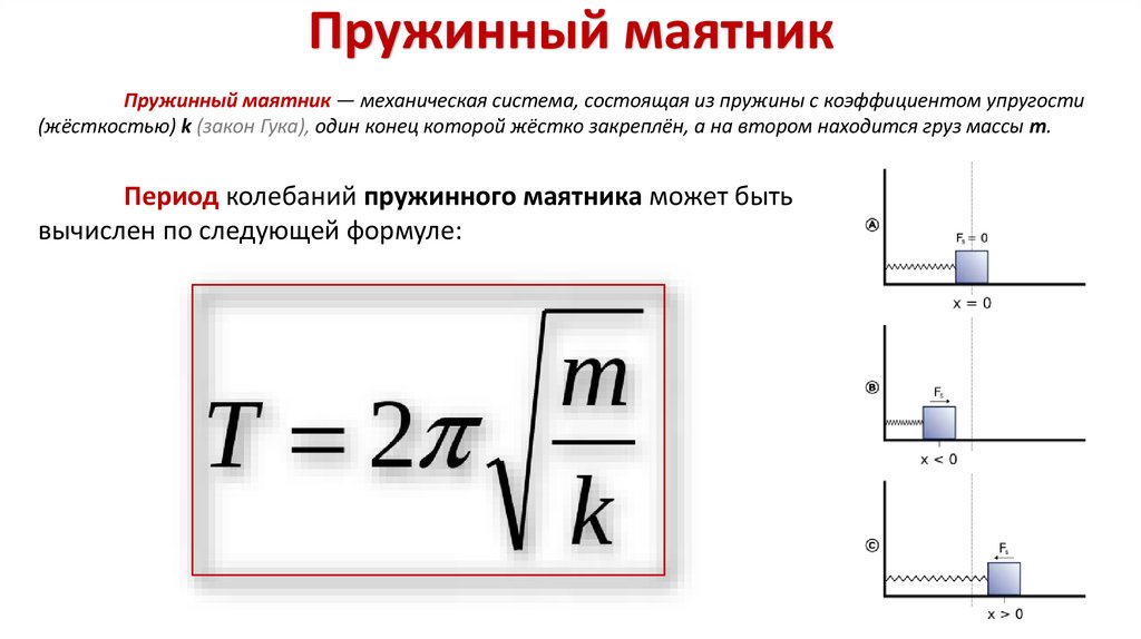 Пружинный маятникПружинный маятник — механическая система, состоящая из пружины с коэффициентом упругости