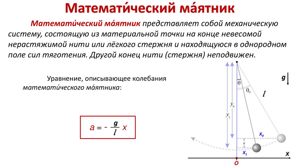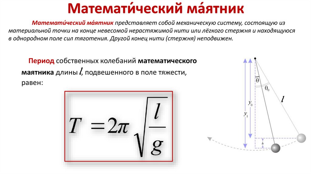 Математи́ческий мая́ тникМатемати́ческий ма́ятник представляет собой механическую систему, состоящую из