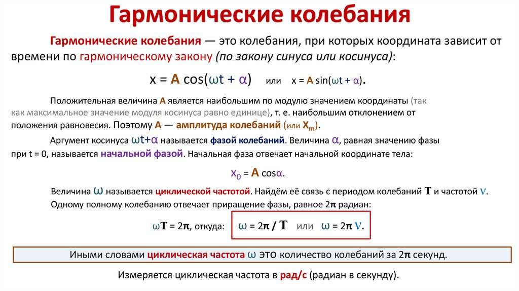 характеристик (координата, скорость, ускорение) периодически повторяются с течением времени.