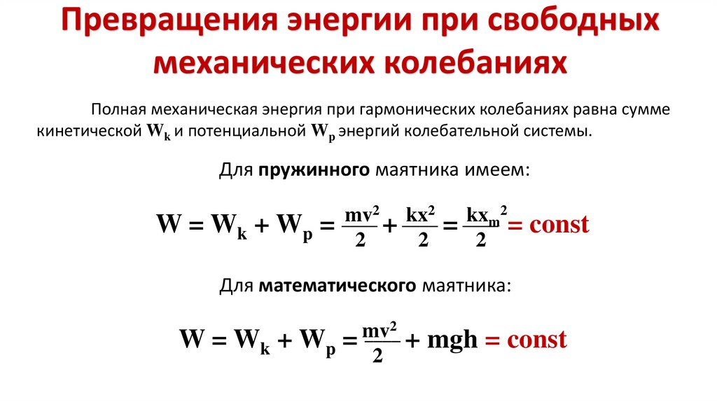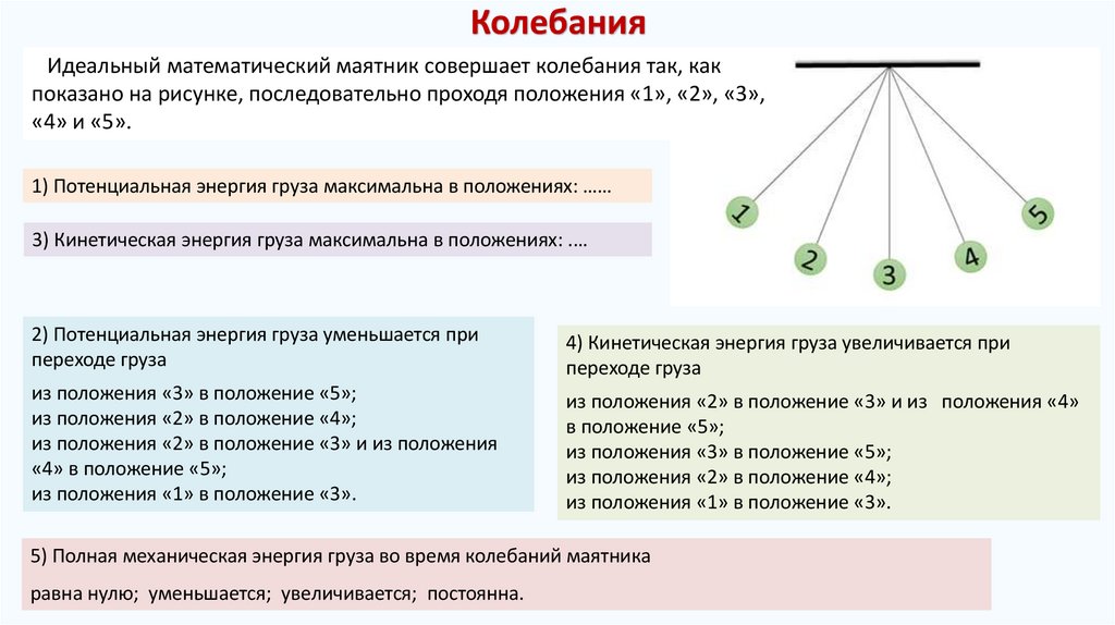 5) Полная механическая энергия груза во время колебаний маятника