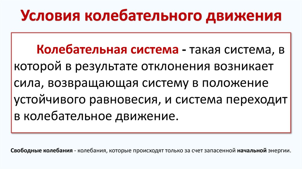 Условия колебательного движенияКолебательная система - такая система, в