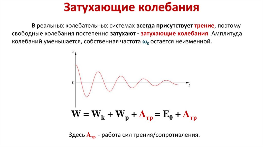 Aтр + Aвн < 0 - энергия колебательной системы уменьшается - затухающие колебания.