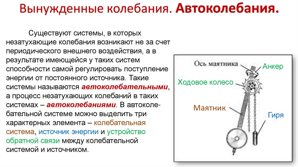 извне, что не даёт колебаниям затухнуть, несмотря на действие сил трения.