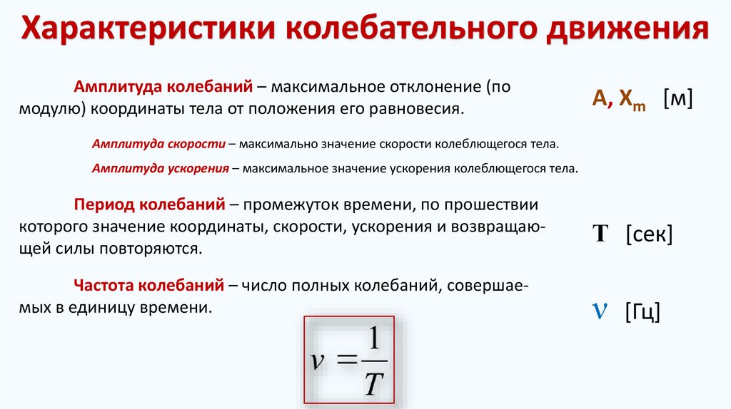 Характеристики колебательного движенияАмплитуда колебаний – максимальное отклонение (по