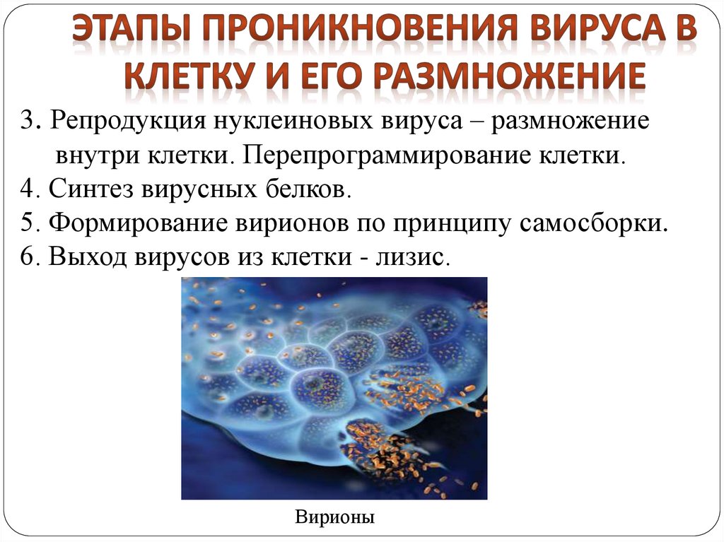3. Репродукция нуклеиновых вируса – размножениевнутри клетки. Перепрограммирование клетки.
