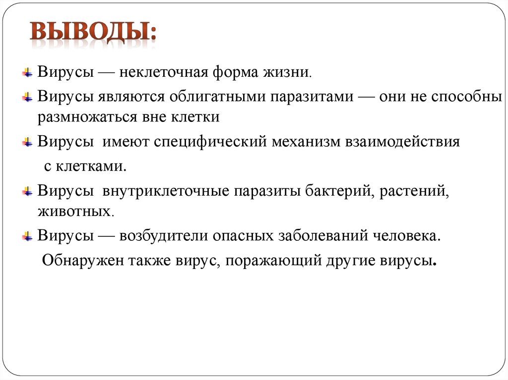 Вирусы — неклеточная форма жизни.Вирусы являются облигатными паразитами — они не способны