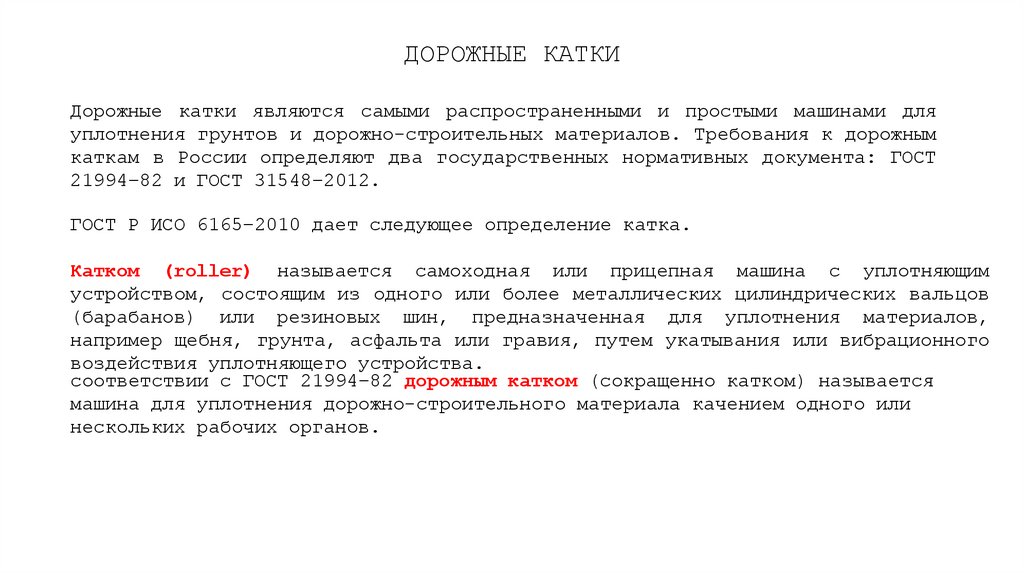 соответствии с ГОСТ 21994–82 дорожным катком (сокращенно катком) называется