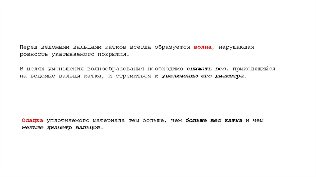 Перед ведомыми вальцами катков всегда образуется волна, нарушающаяровность укатываемого покрытия.