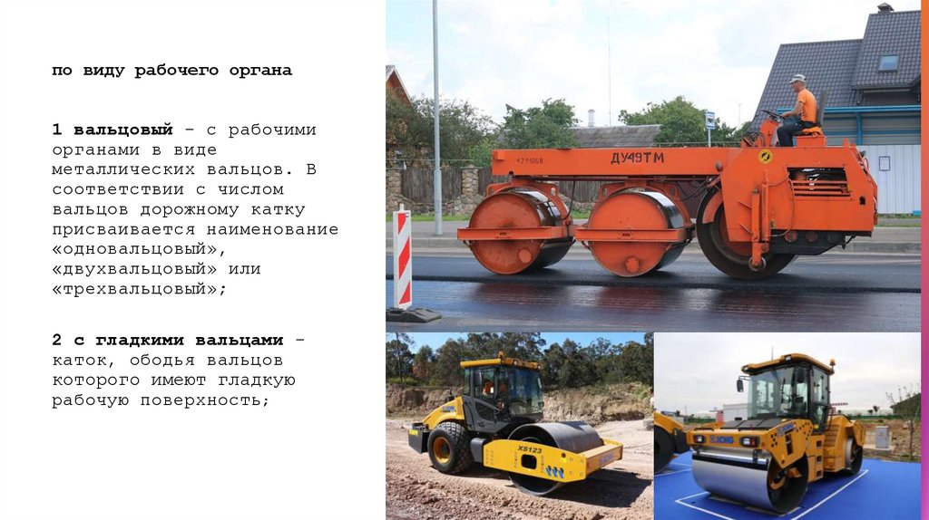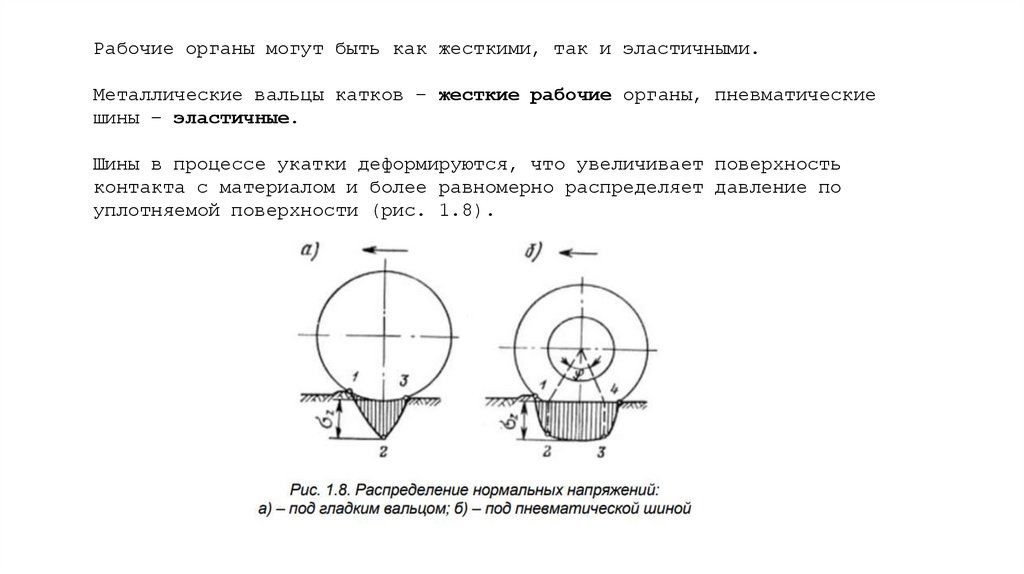 Рабочие органы могут быть как жесткими, так и эластичными.Металлические вальцы катков – жесткие рабочие органы, пневматические